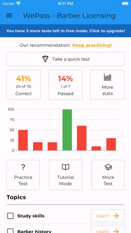 - 3-Day Free Trial: Enjoy unlimited access for the first 3 days! Explore the full range of features and experience the power of WePass. If you want to keep practicing, upgrade to Premium for continued unlimited access.
