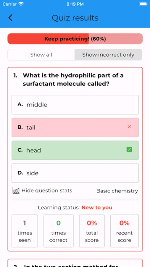 - Progress Tracking: Monitor your study journey with personalized statistics on your practice tests. Understand more about your learning progress, identify strengths, and pinpoint areas for improvement.