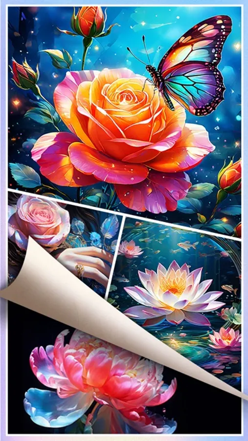 - Diverse range of images: animals, mandalas, room interiors, nature scenes, cartoon characters, and portraits of women.