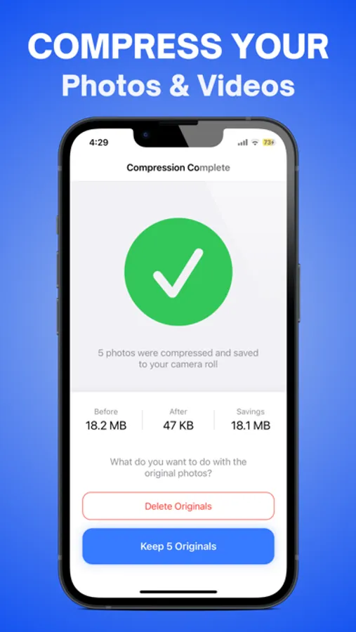 3. Your pictures and images will be instantly compressed and saved to your camera roll (saving your TONS of free storage on your iPhone)