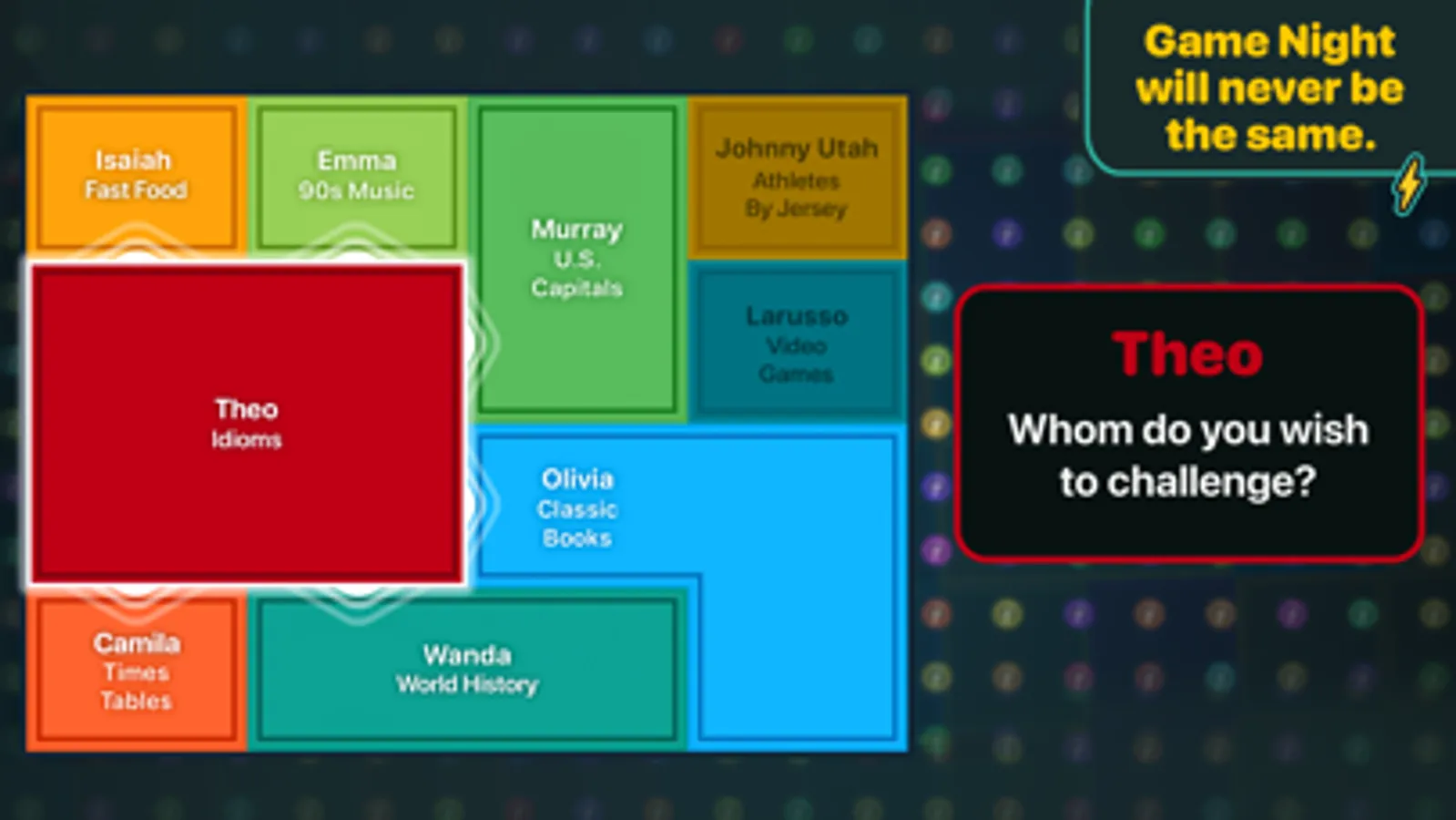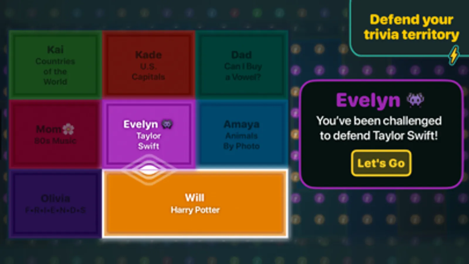 The whole family can play, with categories ranging from animals to world history, Harry Potter to Taylor Swift.