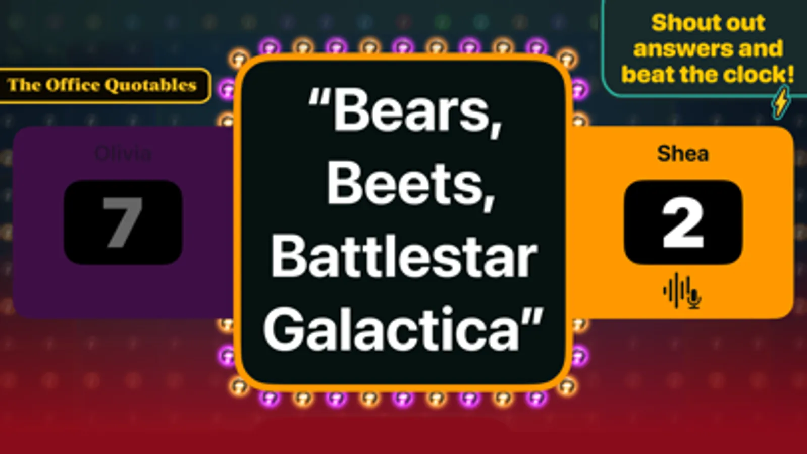 With over 7500 questions in 60 categories (and counting), Lightning Round! is the go-to app for trivia duels. Unlike most trivia games where you tap multiple choice buttons, in Lightning Round! you have to come up with the right answer and say it out loud.