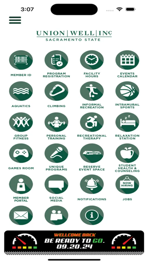 Your portal to access programs, services, and facilities, brought to you by The WELL and The University Union. Use for touchless entry into The WELL Recreation Center and other Union WELL Inc. managed spaces. Activate your membership, register for your favorite programs, and stay up to date on facility news and closures. Get all the info about what's happening in recreation, fitness, leisure, wellness, and entertainment at Sac State. Union WELL Inc. is a proud member of the Sacramento State Division of Student Affairs and exists for the benefit of students, offering a welcoming environment in which students, faculty, staff and alumni may participate in campus life.