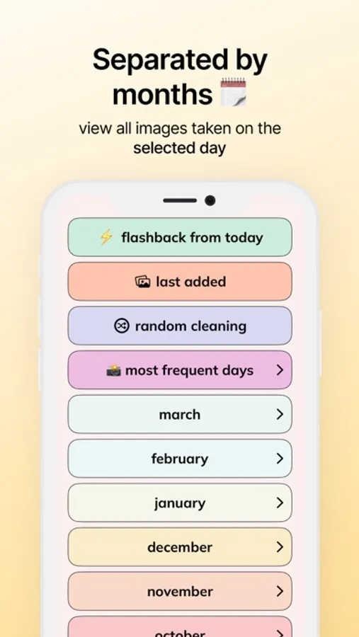 Take a trip down memory lane with Flashback, Get ready for surprises in Random, Review your latest moments in Recent, or keep memories alive by selecting specific dates!