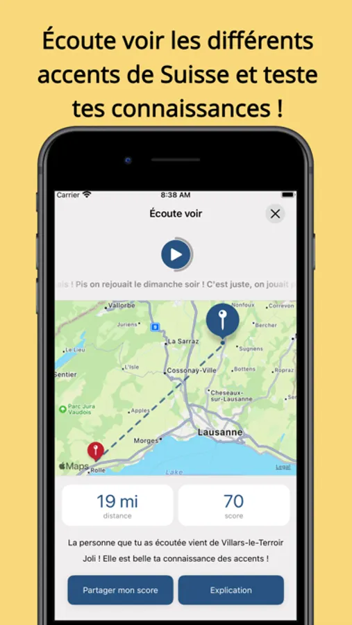 • Dis voir : Cartographiez la Suisse en indiquant comment vous appelez différents objets, situations ou activités. Ce volet permet de récolter des enregistrements de voix pour documenter la diversité des accents du français suisse, faites entendre votre voix et écoutez celle des autres !
