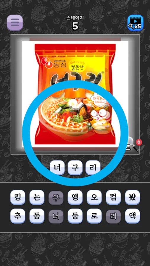 이 게임은 지금까지 살면서 한번쯤 먹어본 라면의 이름을 맞추는 단어퀴즈 게임입니다.