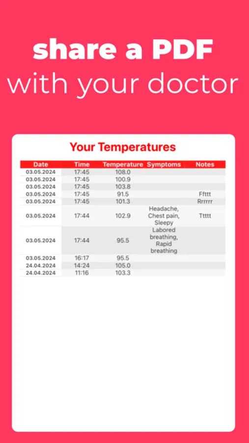 Tracking and analyzing body temperature is now easier than ever! With the Body Temperature Tracking and Analysis app, you can record your daily fever, view your data in graphs and lists, and easily share it in PDF format with healthcare professionals or doctors.