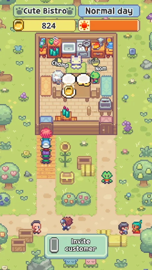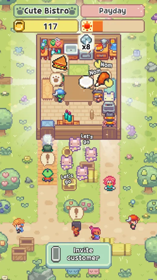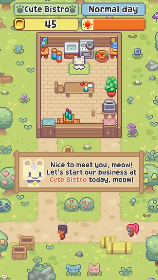 - Use the money earned to upgrade your bistro, market, and working cats, meow!