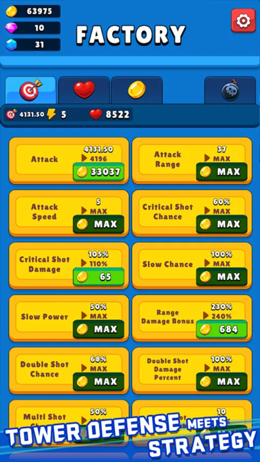 Upgrade your Castle, utilize support packages, and leverage idle gifts to secure victory. Enhance your Castle's shooting capabilities to overcome your foes.