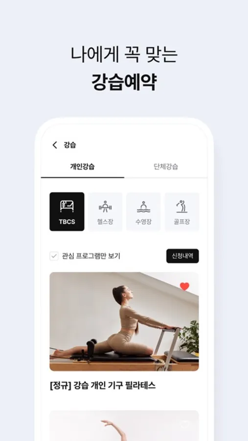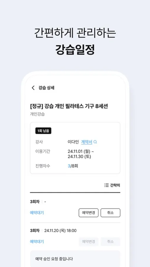 진행중인 강습 프로그램의 상세정보를 확인하고, 신규 예약 상담까지 앱에서 가능합니다.