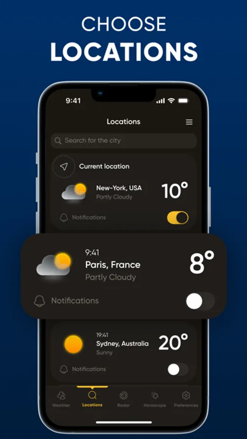 - Global Weather Forecasting: Whether you're exploring new territories or staying close to home, effortlessly bookmark and access locations worldwide for personalized weather updates wherever you roam.