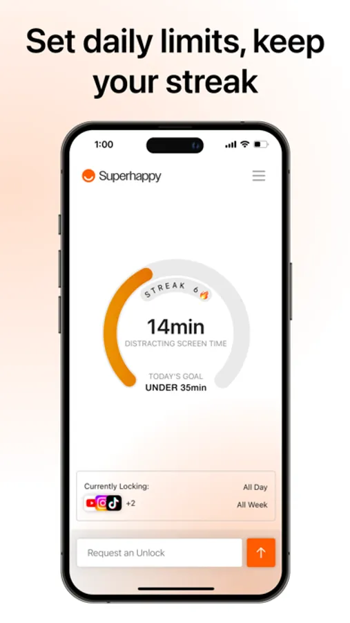 Superhappy is more than an app blocker tool — it’s your partner for building self control and learning to limit screen time. Our users have transformed their screentime, switching from aimless scrolling to purposeful focus.