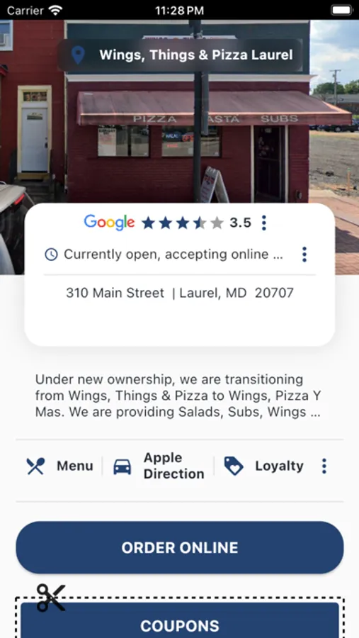 Wings, Pizza Y Mas restaurant app has many different functions. It contains and online ordering link, restaurant images, address and driving directions, store hours, menus, and many other great features.