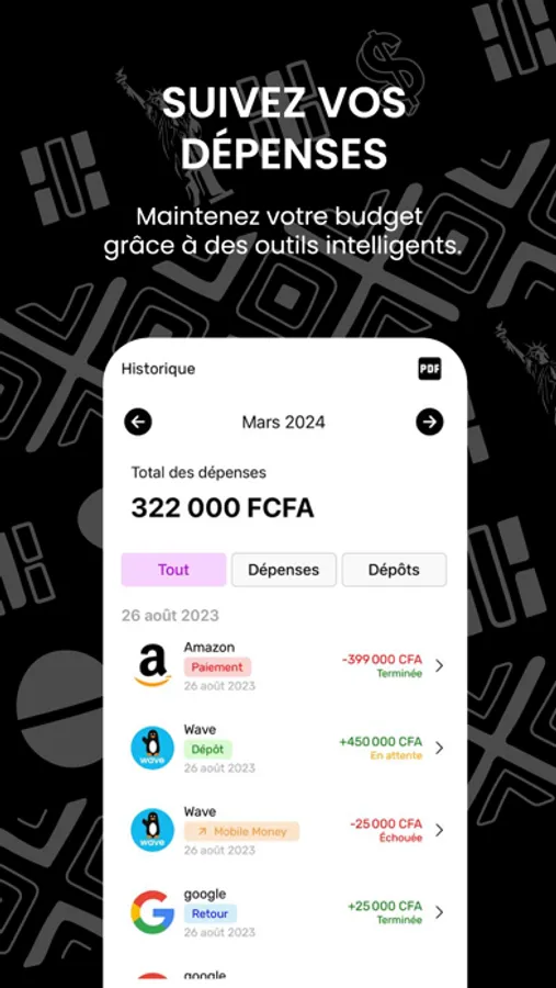 Nous comprenons l'importance de l'épargne pour assurer votre avenir financier. C'est pourquoi nous avons inclus une tirelire numérique dans notre application, vous permettant d'épargner facilement pour vos objectifs financiers. Que vous économisiez pour un voyage, un achat important ou simplement pour constituer un fonds d'urgence, notre fonctionnalité de tirelire vous aide à atteindre vos objectifs financiers plus rapidement.