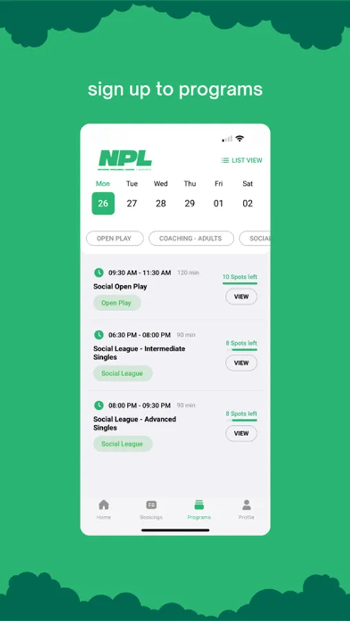 Join top-tier programming – From clinics to open play, find sessions that match your level and goals.