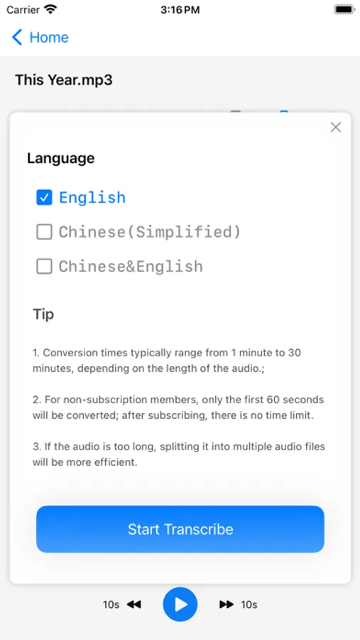[Audio to text] Import third-party audio files for transcription.