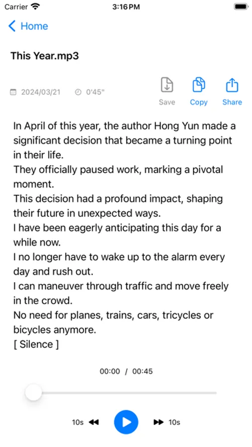 Audio Text is an application that converts speech in recordings, audios, and videos into text. It is simple and convenient to use.