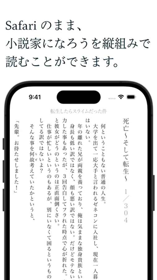 ブラウザのまま「小説家になろう」や「カクヨム」の作品を縦組みで読むことができます。