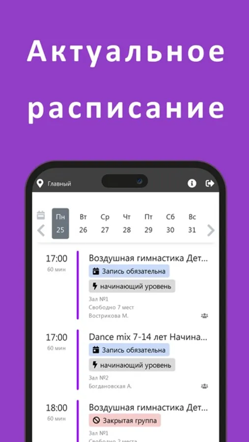 С помощью приложения вы сможете смотреть расписание, записываться на тренировки и отслеживать свои посещения в студии танцев THE BAT.