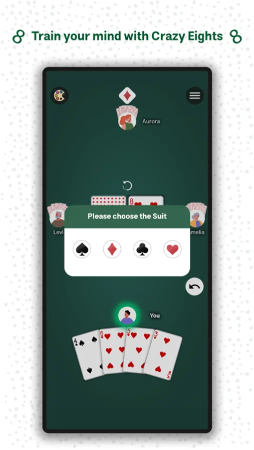Undo: Feel free to undo if you made a mistake.Settings: Manage audio effects, game speed and auto play cardsAI: Power AI opponents