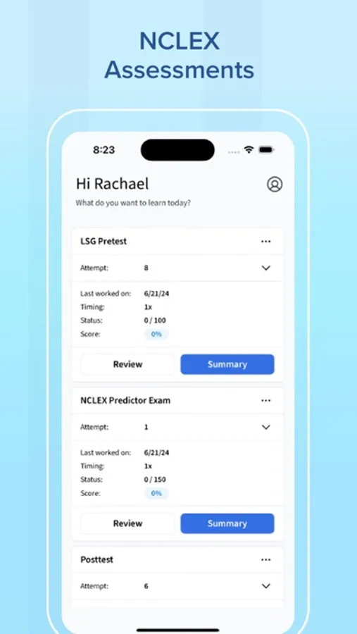 • NCLEX Assessments: for NCLEX students, track your learning and see where your strengths and weaknesses lie with pre- and post-exams.