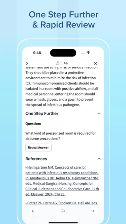 • Rapid Review & One Step Further: recap the main points with a rapid review and a bonus question provided with each Qbank explanation.