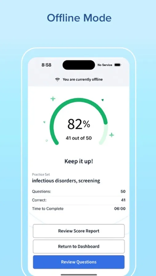• Offline Mode: easily download practice sets or exams for offline practice and sync when you’re back online.