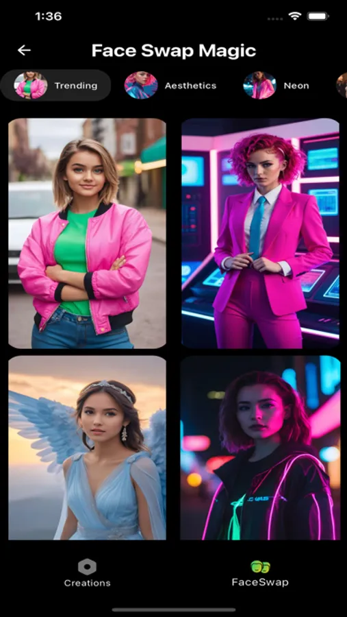 Discover the power of face transformation with Face Swap Magic: AI Avatars. Seamlessly swap faces with your favorite images from our extensive collection of categories, each offering a unique and exciting visual experience. From trendy styles to timeless classics, there's something for everyone.