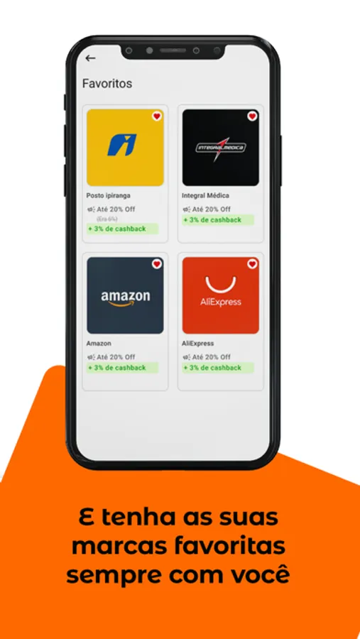 Navegue por um cardápio de ofertas com marcas parceiras de diversos segmentos.