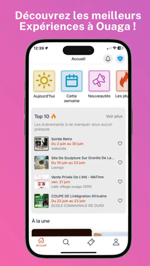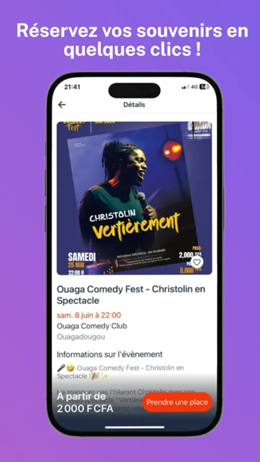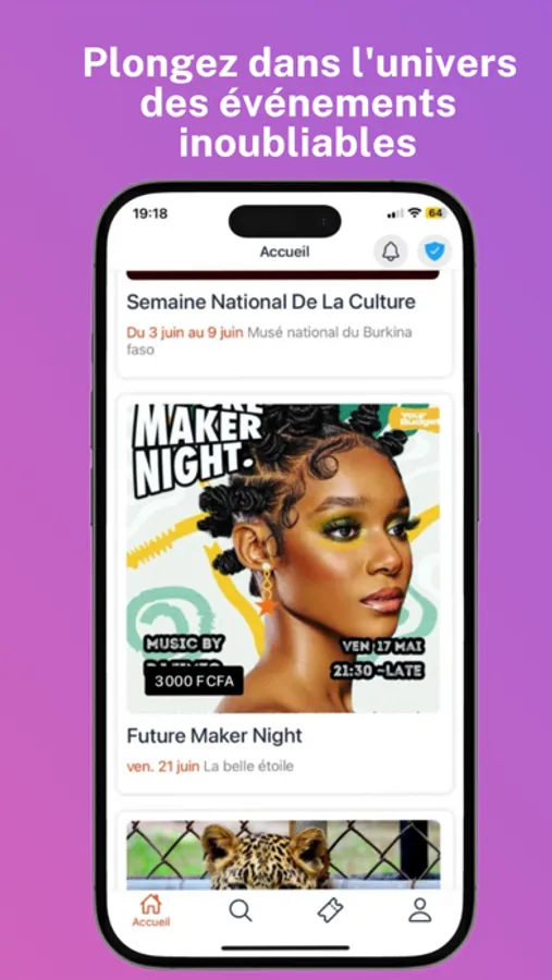 • Découvrez des événements à Ouagadougou : Explorez facilement des concerts, soirées, spectacles, et autres événements autour de vous !