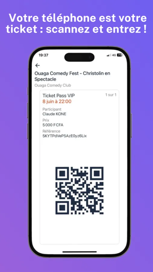 • Achat de billets en ligne sécurisé : Payez en toute sécurité via Orange Money, Moov Money ou carte VISA et recevez vos billets électroniques sous forme de QR code directement sur votre téléphone.
