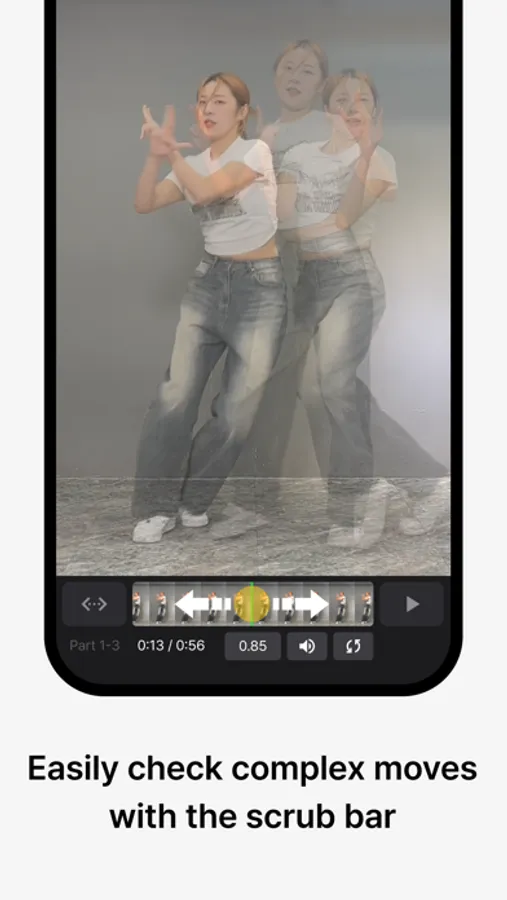 You can also watch your video side by side with the reference and use loop, speed control, and precise scrubbing – all designed for dancers.