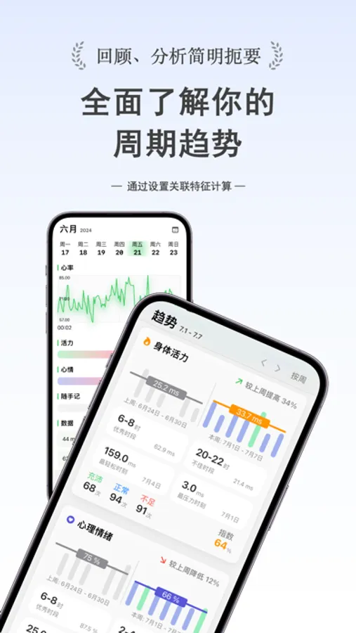- 双维监测:独立追踪身体活力与情绪波动,提供更精准的分析