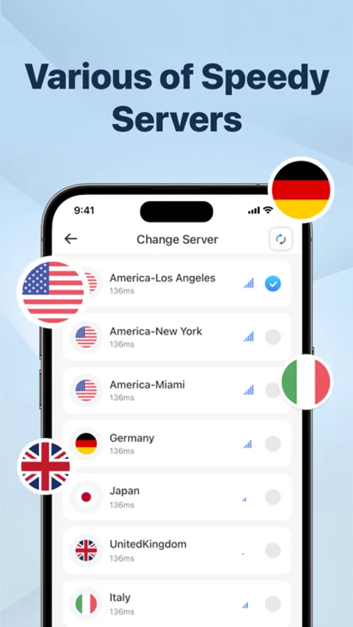 With Light VPN, you can browse the web, stream content, and access your favorite online services with speedy services. Our advanced encryption technology ensures that your data remains private and protected, even on public Wi-Fi networks. Light VPN offers lightning-fast connection speeds, allowing you to enjoy seamless browsing and streaming. You can choose server from the list we offer.