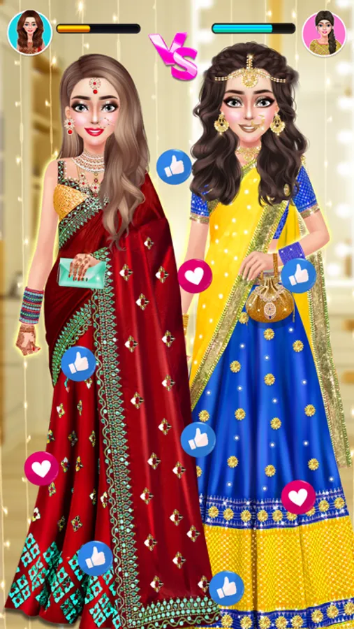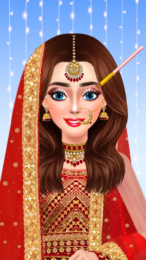 In the makeup Dressup game as a makeup stylist, you have to explore super wedding stylist outfitters to make your bride princess in bridal wedding makeup and make a beauty game star with traditional fashion wedding dresses in the girl dress up and makeup game. In the dress up fashion game, make the bride ready for an Indian wedding dress makeover. Indian fashion girl makeover is a fashion wedding dress up and makeup game in which you have a variety of traditional Indian wedding dresses, bridal jewelry, and classy bridal makeup for the princess makeover in girl makeup wedding games. Make a fashion girl's wedding royal or dream wedding by choosing the perfect wedding dress and makeup in the makeover dress up game. Dress up the bride and do makeup according to the wedding dress in a beauty makeover salon by applying makeup foundation, eye makeup along with eyelashes and mascara, perfect lipstick and blush, and also choosing a variety of accessories to make the sweet bride more beautiful for her wedding in fashion makeover games. This fashion game gives you the chance to become a wedding fashion designer in the world of a fashion show or dress up a princess in girl fashion design games.
