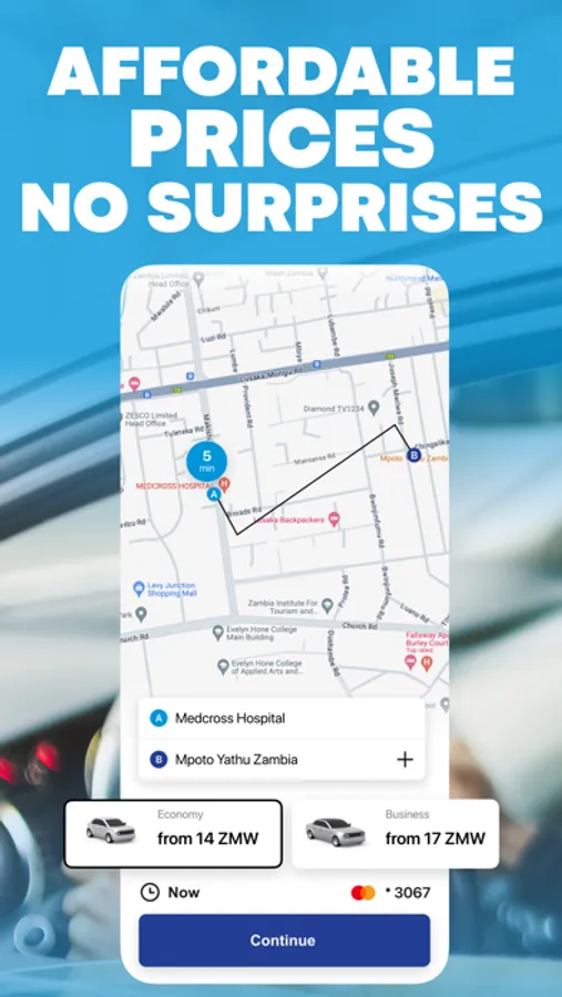 Join and book taxi app in Zambia (Lusaka, Copperbelt, and Livingstone) in seconds!
