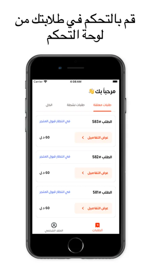 لمحة سريعة عن تفاصيل الطلب: يتم عرض جميع المعلومات الضرورية ، بوضوح لكل طلب.