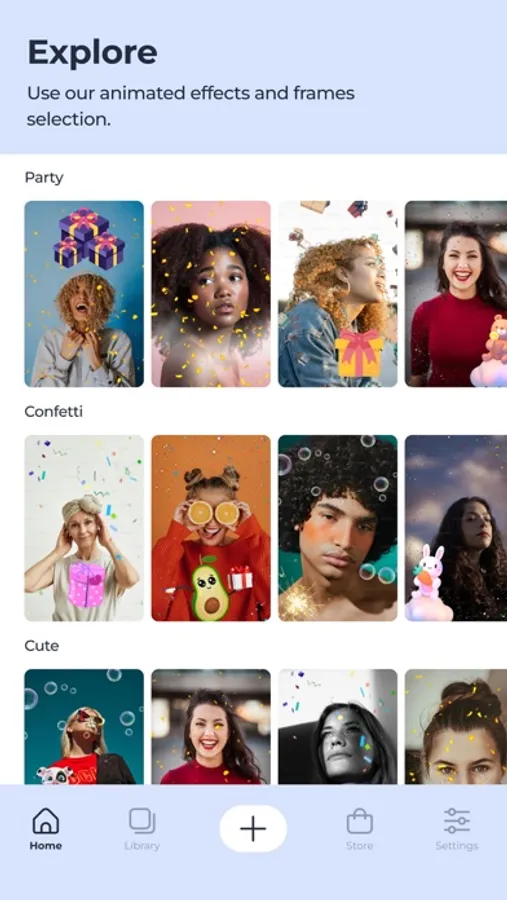 Special effects: Bring your photos to life with sparkling animations, floating confetti, and magical effects.