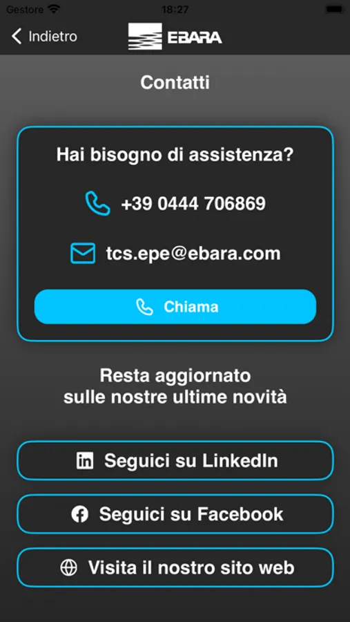 By the app for your mobile device, dedicated for Ebara’s Hydrostation hydric pressurisation units, you have full control of your devices. Easily set the working pressure and the differential restart to guarantee optimal performances. Check the working status in real time, check the energy consumption, the working frequency and the working pressure. Receive instant notifications in case of alarms and suggestions to solve them. Get support by contacting Ebara's technical customer service. A key app to guarantee the safety and the efficiency of your Hydrostation units.