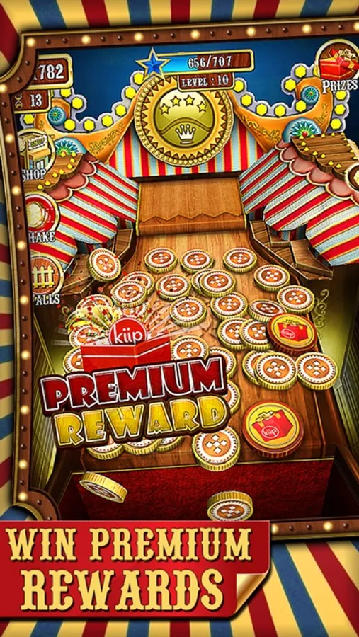 Set amidst an ambiance of festivity, Carnival Coin Pusher is bound to enhance your experience of playing this arcade game. It comes with exotic prizes, magical coins, and above all, Premium Rewards!