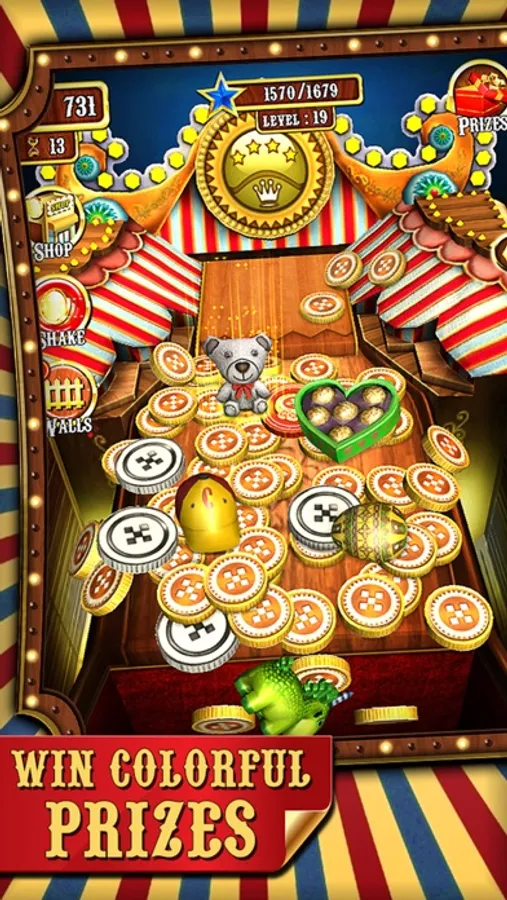 - Brag about your rewards with your Facebook friends and tell them about your feats in Carnival Coin Pusher.