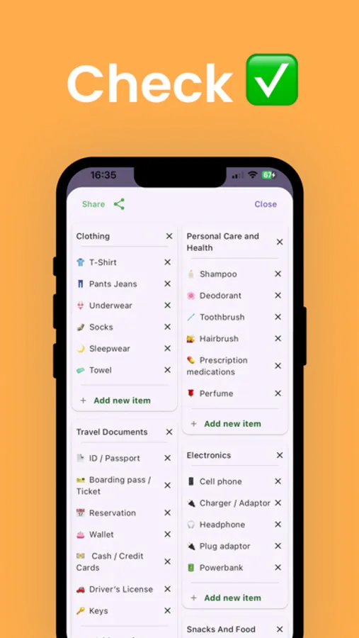 Effortless Packing Tracker: Keep track of what's packed and what's pending with a simple tap. Our app ensures you never miss a beat, making your packing process smoother and more efficient.