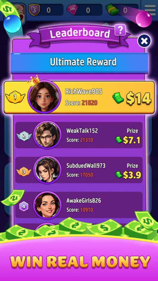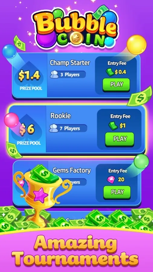 - Participate in tournaments with multiple other players in different game modes, and the 3 players with the highest scores will receive prizes. The higher your ranking, the bigger the rewards! Choose from a variety of prize pools and win real cash and prizes!