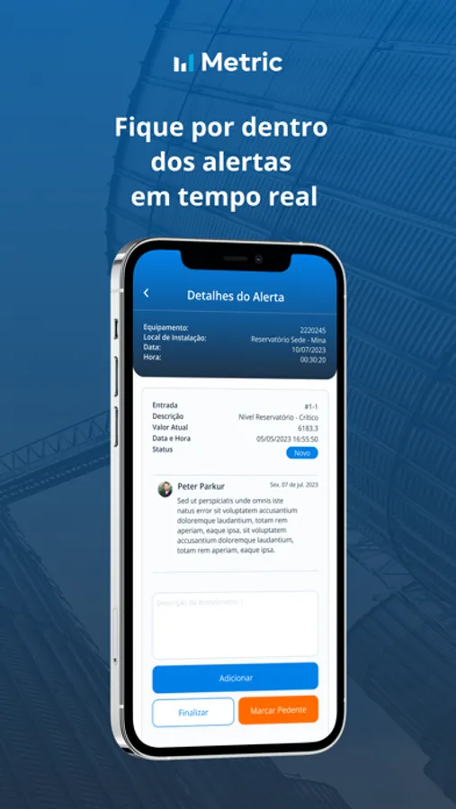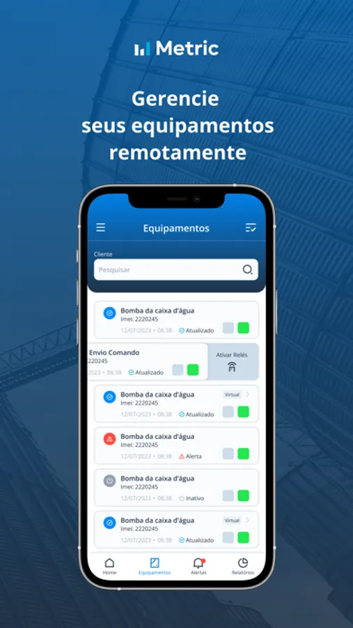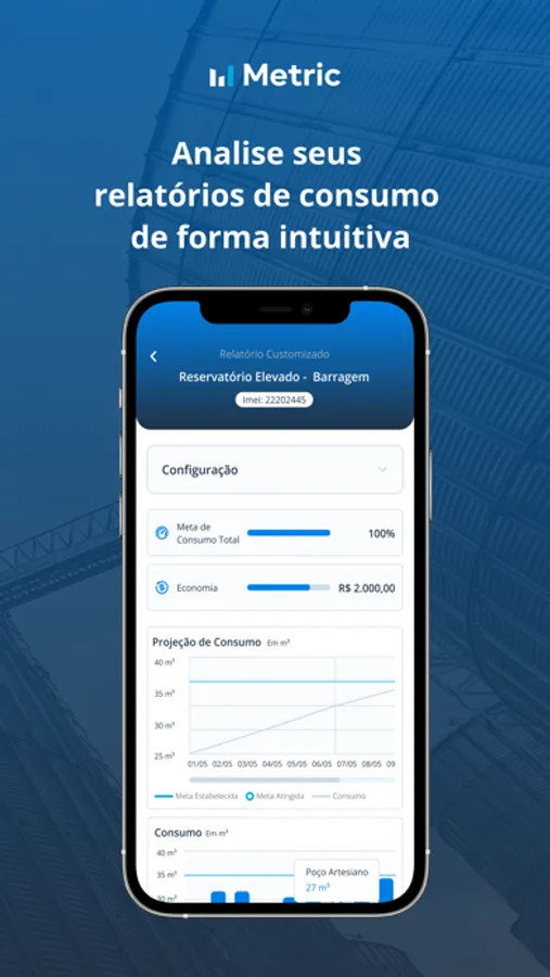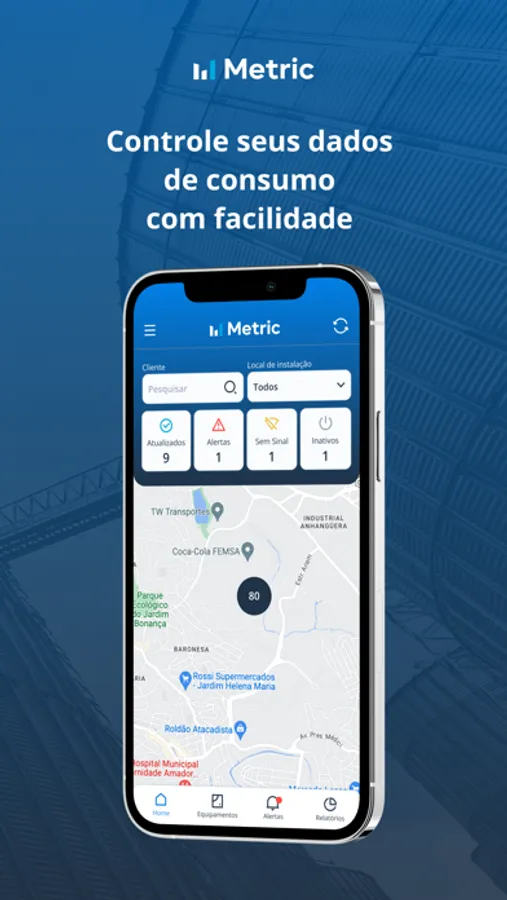 Metric é um aplicativo para o mercado de IOT. Para monitoramento e gerenciamento da telemetria, possui um sistema completo para aferir dados referentes a água, energia, gás, temperatura e diversos outros sensores do mercado. A plataforma contém integrações com diversos fabricantes e modelos de hardwares, possibilitando a escolha pelo usuário. É possível também, tomar algumas ações com as informações fornecidas pelos relatórios.