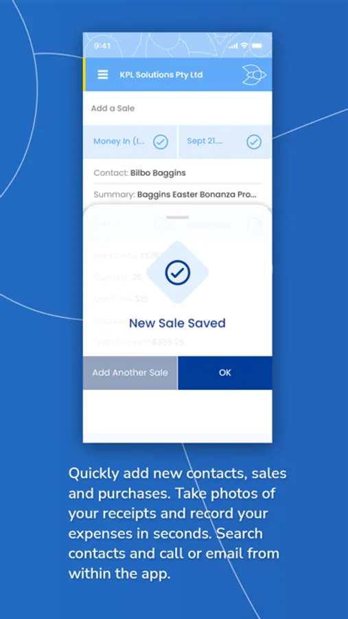 • Quickly add new contacts, sales and purchases
