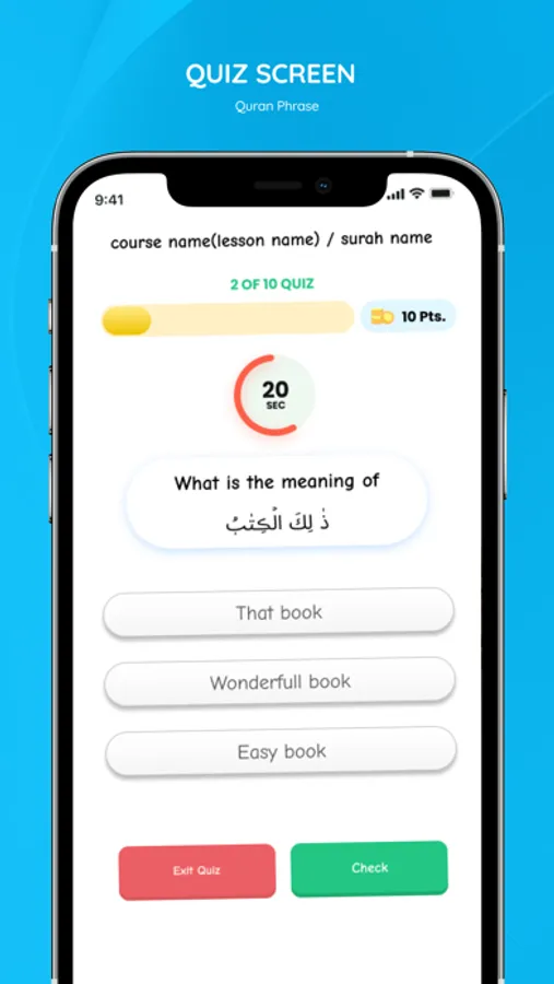Learn Quran vocabulary through Phrases. This app seamlessly integrates as a widget on home screen. You can get the phrases on home screen displayed course wise or Surah wise. Courses are special easy courses designed by Understand Quran Academy. Play quizzes and learn phrases in an easy way and earn points as well along the way!