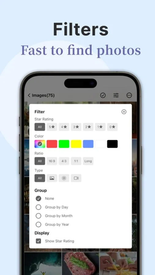 If you are a "photographer", every time you take a lot of photos, you can directly import them into your mobile phone through Albus. Photos can be grouped by star rating, which can help you and your customers quickly filter out the photos you want.