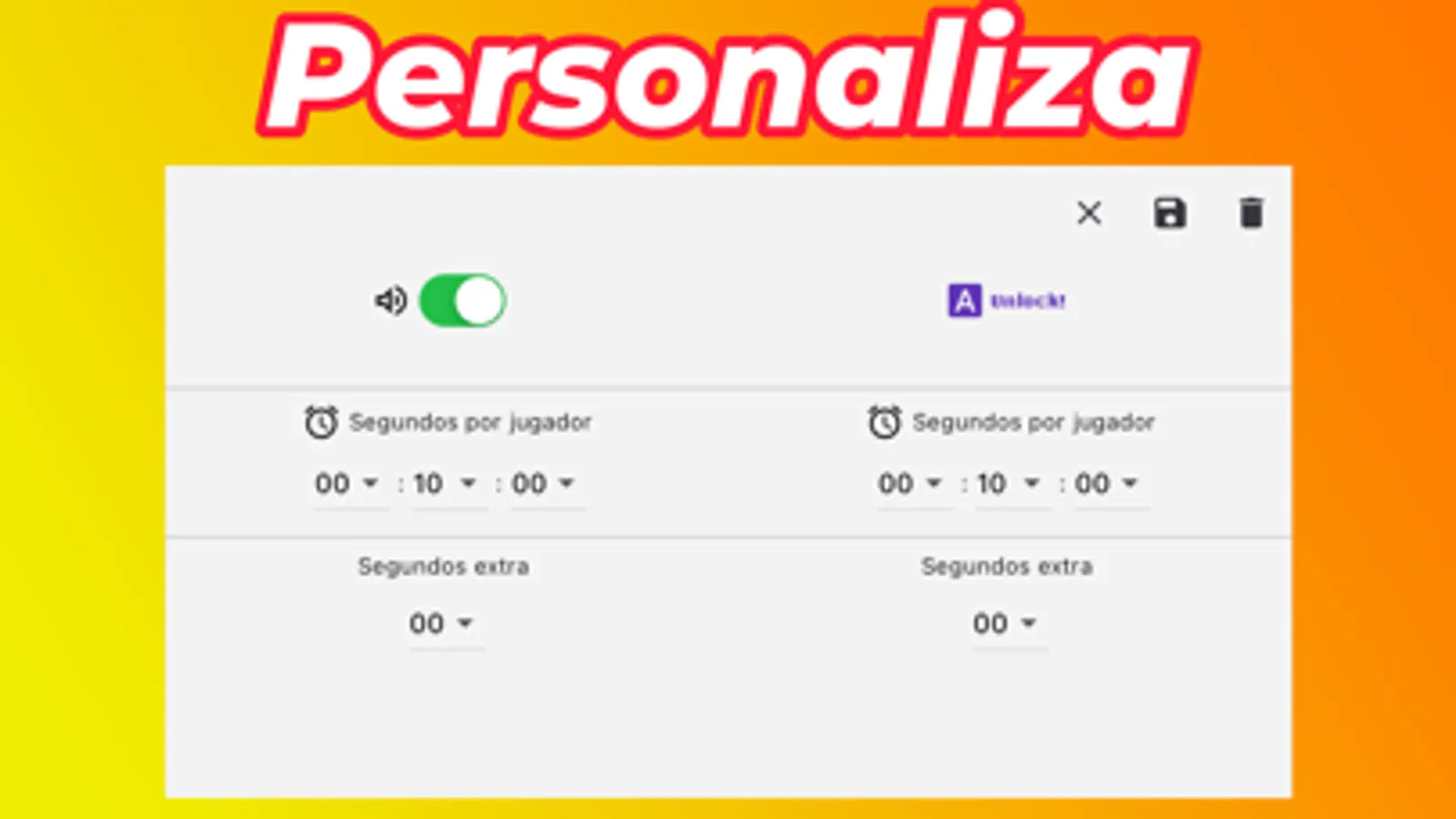 Temporizador ajustable: Configura el tiempo de juego según tus preferencias, ya sea para partidas rápidas o partidas más estratégicas y prolongadas.