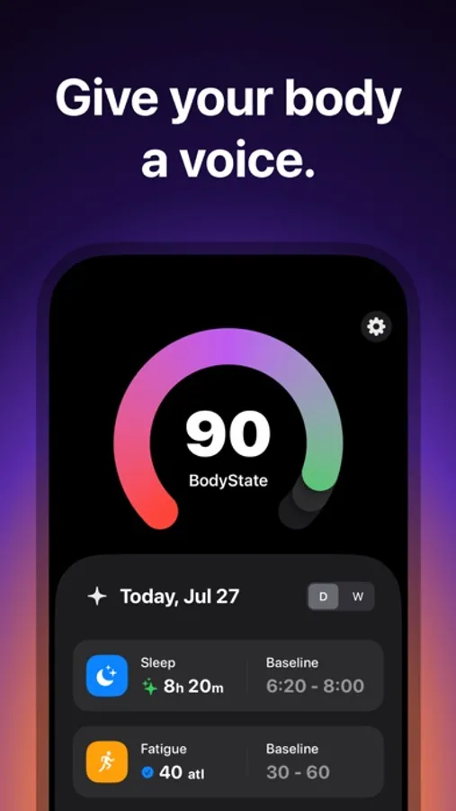 BodyState gives you a daily energy score from 1 to 100, combining your most important fitness metrics into a single, clear signal. Whether your goal is to manage stress, plan workouts, or simply feel better, BodyState helps you make smarter choices in tune with your body.