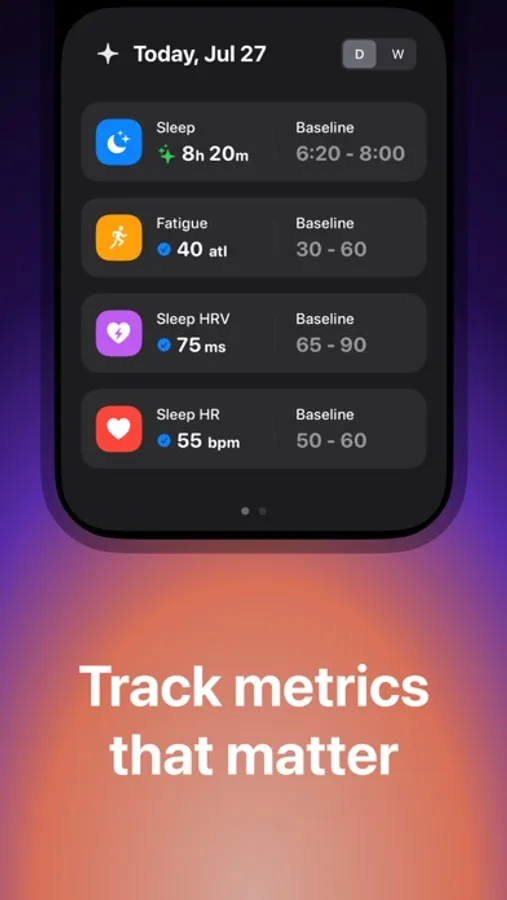 - All-in-One Dashboard: Get your energy, stress, sleep, and training signals all in one intuitive view.